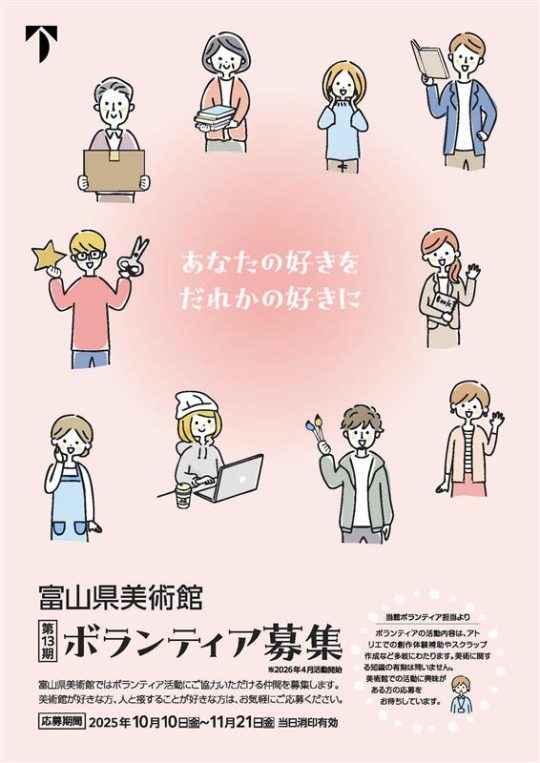 富山県美術館ではボランティア活動にご協力いただける仲間を募集します。