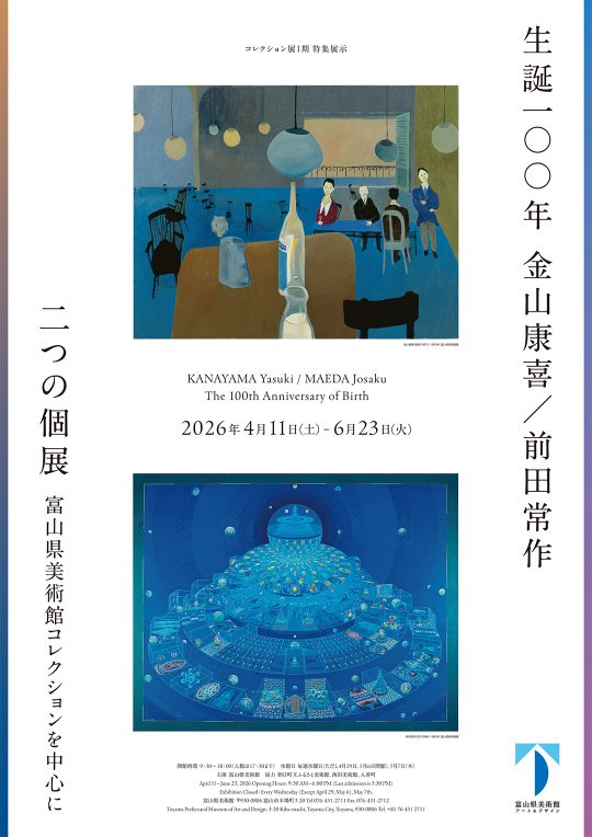 展覧会・イベントExhibition & Event ホーム 展示会・イベント コレクション展 企画展 コレクション展 イベント・プログラム イベントレポート 講演会等アーカイブ 展覧会・イベントカレンダー 年間スケジュール コレクション展 開催中・今後のコレクション展 過去のコレクション展 開催中のコレクション展 コレクション展Ⅳ 1月15日(木)~4月21日(火) MORE 開催中のコレクション展 デザインコレクション展Ⅳ 1月15日(木)~4月7日(火) MORE 開催中のコレクション展 瀧口修造コレクションⅣ 1月15日(木)~4月7日(火) MORE 開催中のコレクション展 シモン・ゴールドベルク&山根美代子コレクションⅣ 1月15日(木)~4月7日(火) MORE 次回のコレクション展 コレクション展Ⅰ期 特集展示「生誕100年 金山康喜/前田常作 二つの個展 富山県美術館コレクションを中心に」 2026年4月11日(土)~6月23日(日) MORE